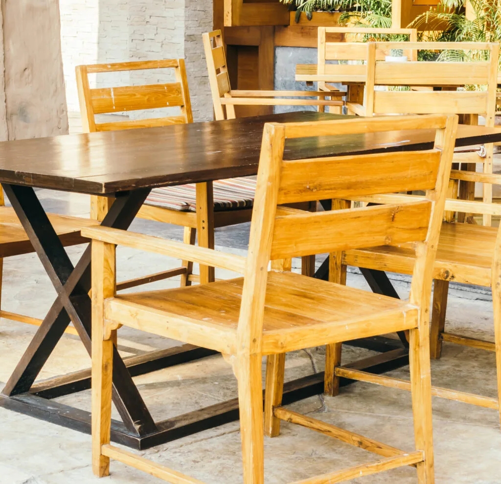 Feitos 100% em madeira, nossos jogos de mesa e bistrôs são versáteis, fáceis de limpar, resistentes ao uso intenso e perfeitos para qualquer tipo de ambiente comercial ou de lazer.